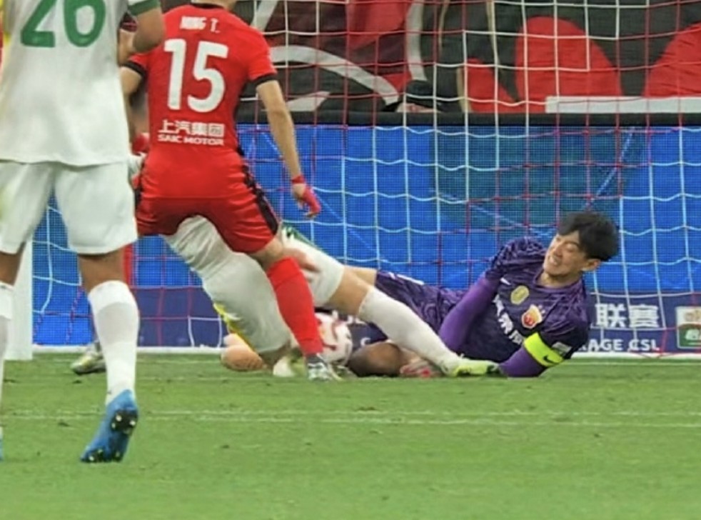 在对阵北京国安的比赛中,颜骏凌在上半场一次扑救中受伤,随后被对手打入一球。半场比赛结束后,颜骏凌无法坚持比赛被替换下场。